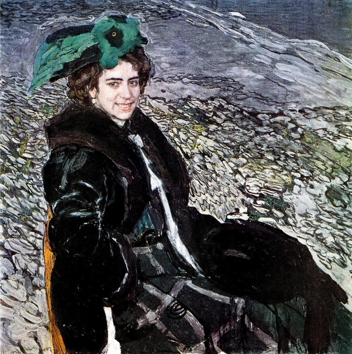 Этот женский портрет я увидела давно, кто на нём изображен я тогда не знала, моё внимание привлек художник, его имя я запомнила – Александр Головин. Вот эта картина.
