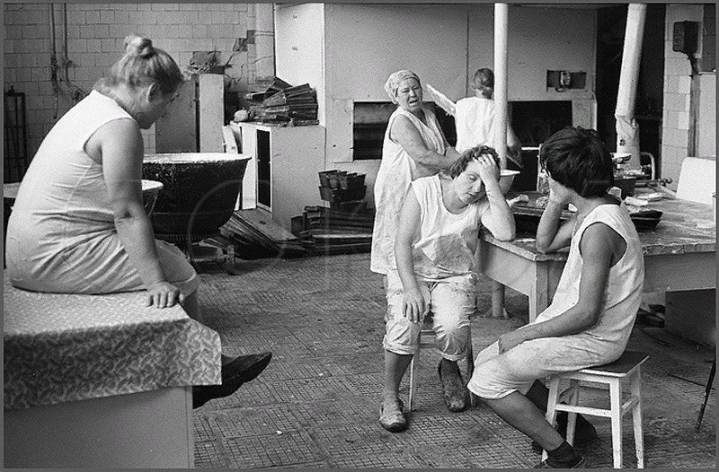 Советского союза нет уже более 30 лет, а споры о том, как же жилось при СССР ведутся до сих пор. Спорят те, кто застал и Хрущева, и Брежнева, и Горбачева. И те, кто пешком ходил под стол при Михаиле Сергеевиче. Как кому тогда было - у каждого своя переменная. Одно известно точно - "сверху", в СМИ поступали указания, какой образ необходимо транслировать через телепередачи, кино и газеты. Много материала "заворачивали" с формулировкой "порочит образ советского гражданина". Давайте поближе рассмотрим фотографии, которые не представлялось возможным опубликовать во времена СССР. На главном фото - работницы одного из хлебозаводов. Уставшие, обессиленные женщины. В пекарне установлена автоматическая линия, но хлеб тогда получается недостаточно пышный, потому работницы все продолжают делать вручную. А автоматическую линию включают только когда ожидается визит большого начальства. Алкоголизм в разные годы был проблемой в СССР. В большей или меньшей степени. Сейчас никого не удивить кадрами с ал