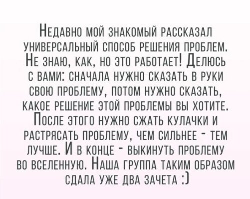 С помощью метода кулачка можно избавиться от насущных проблем, найти потерянное, обрести любовь и добиться цели. Универсальная, а главное простая в исполнении методика программирования. Главное, в подробностях проговорить желаемый результат. А путь к его достижению Вселенная подскажет самостоятельно! Объяснение волшебству имеется. И даже весьма доказательное. Учёных давно интересовал вопрос: как же неразумная молекула ДНК запоминает столь огромный объём информации? А потом Джон Скотт Рассел открыл солитоны! Протоны знаете, о фотонах слышали, а при слове солитоны в голове образуется вакуум? А ведь их значение огромно. Если говорить простым языком, солитон - это волна. Но она разумна! Это доказали эксперименты, проведенные сотрудниками математического института РАН. Солитоны