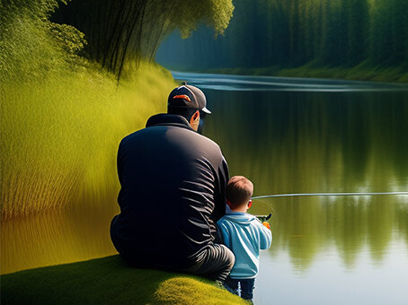Николай с сыном Илюшей наконец-то выбрался на рыбалку. Вверх по речке они доехали в безлюдное место и расположились на опушке леса.