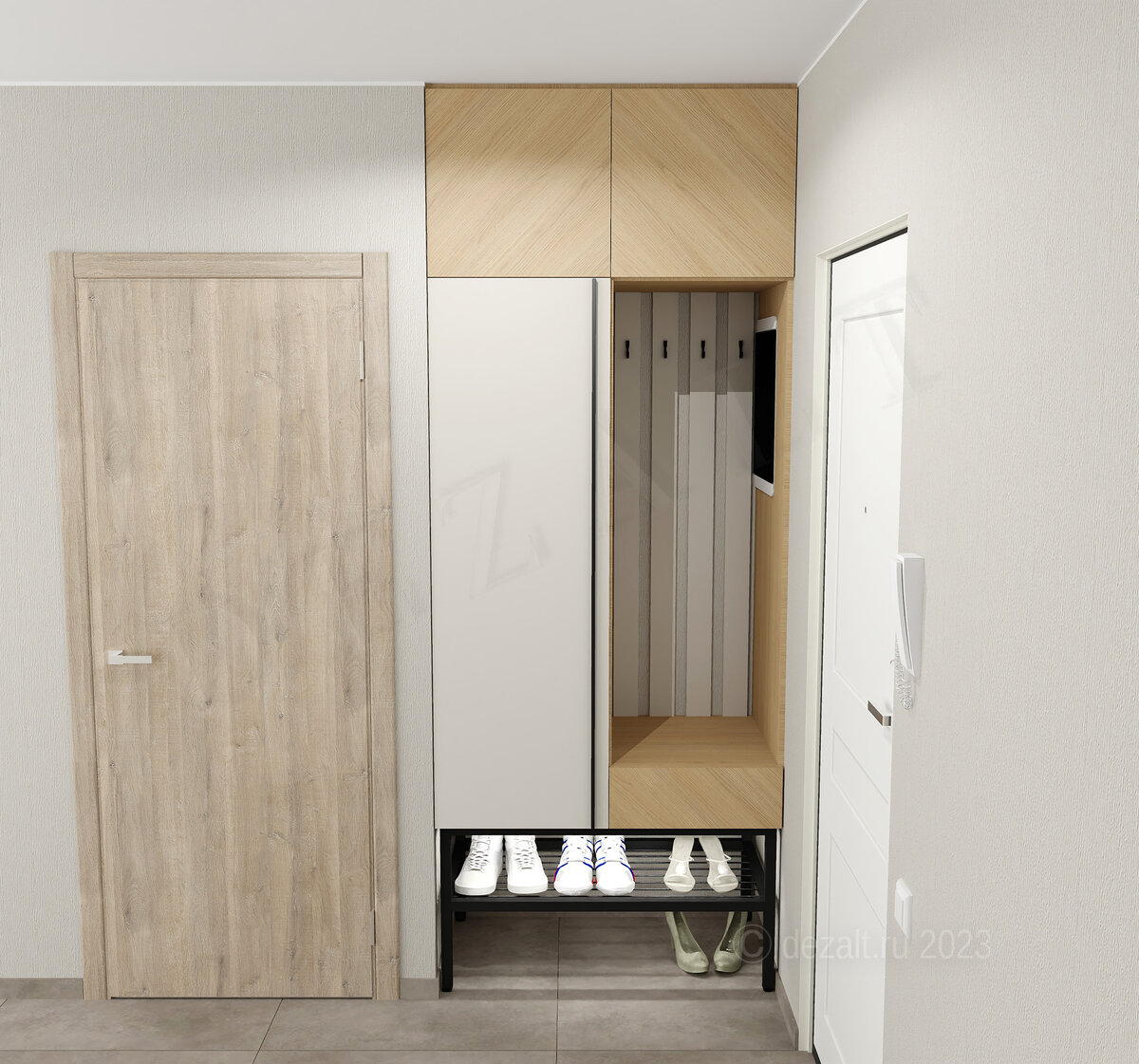 Сделал второй вариант с открытой секцией, выслал клиенту, он пока не видел. Не факт что понравится, потому что тут виден щиток электрический. Ну предложу, пусть подумает. Иногда совместно можно придумать что-то интересное, что устроит клиента.