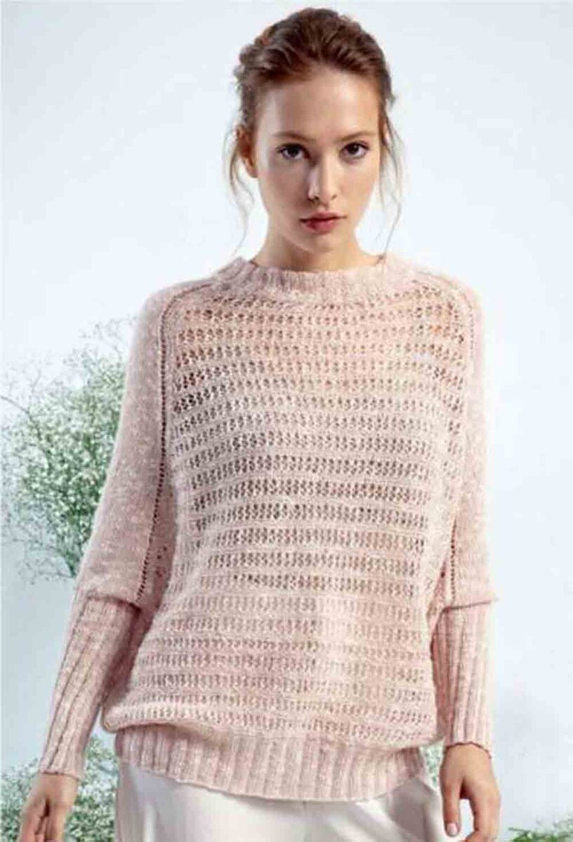 Весна – чудесное время года. В ней столько красок, звуков, цветов, эмоций и ощущений! Солнце светит ярко, звенит капель, журчат ручьи, хочется больше времени проводить на улице. Чтобы не упустить ни одного мгновения этого прекрасного времени года, для прогулок предлагаю связать нежный обволакивающий пуловер. Для пуловера предлагается выбрать нежную меланжевую пряжу из хлопка и кашемира (60% хлопка, 40% кашемира; 200 м/25 г), примерно 175-250 г (в зависимости от размера). Описание дано для размеров S (М) L (ХL). Потребуются спицы №3 и 3,5, короткие круговые спицы №3. Узоры Фантазийная резинка: кром., * 1 изн., 3 лиц., 1 изн., от * повторять, закончить ряд кром. (= 3 лиц., 2 изн.). В следующих рядах вязать петли по рисунку. Круг. ряды: * 3 лиц., 2 изн., от * повторять. Платочная вязка Лицевая гладь 2 п. провязать протяжкой 3 п. провязать протяжкой Плавное закрытие петель (без ступенек): заканчивая ряд, предшествующий убавлению, снять не провязывая последнюю петлю. В следующем ряду,