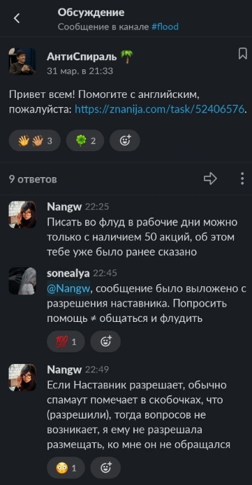 Видим, что нет никакой правильной позиции ни у одного из члена команды, чтобы решить вопрос в личных сообщения, после сделанного замечания СпамАту. Такой пример дают коллеги, на глазах у всех, которые в команде уже не один год.