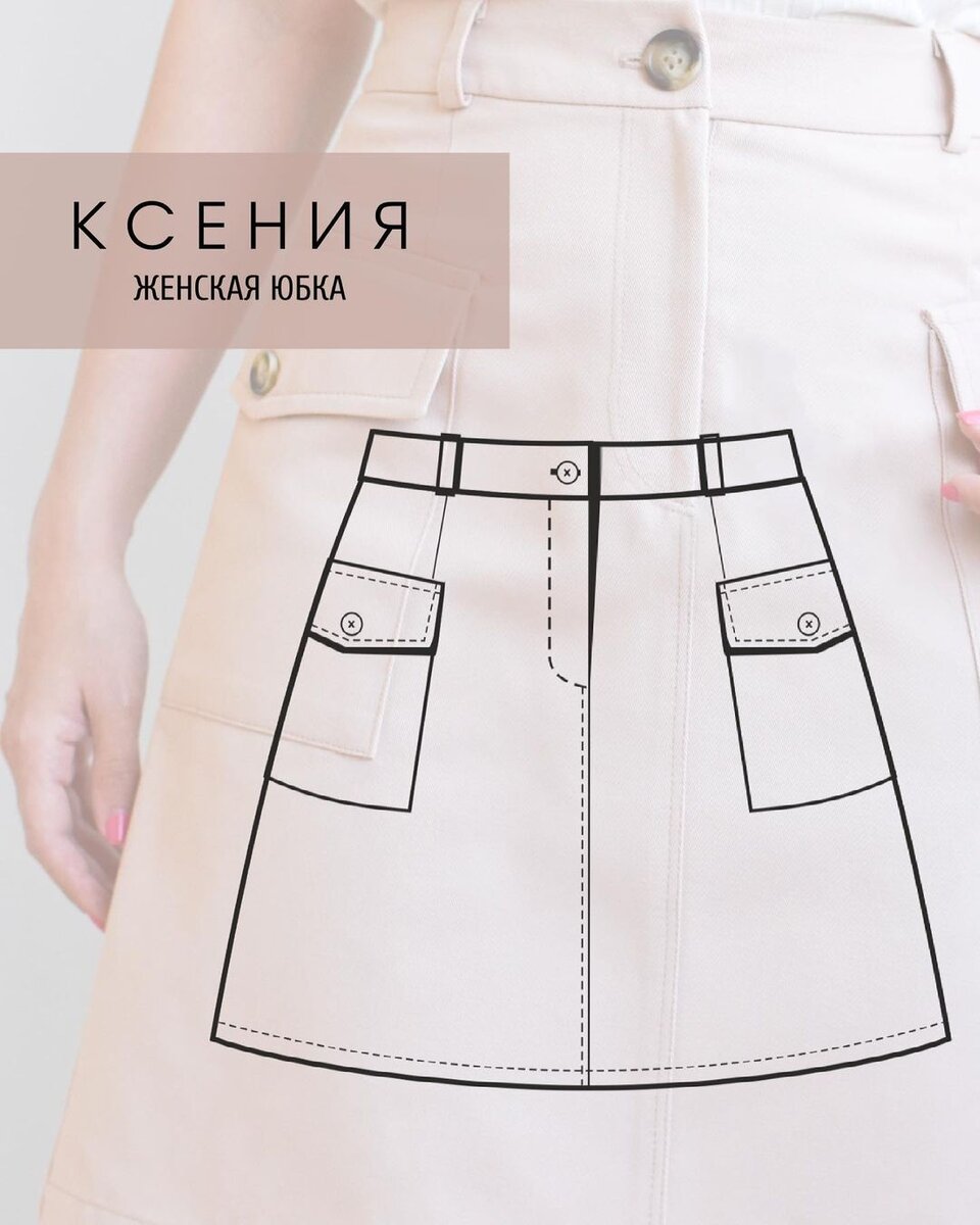 Да, самые внимательные могли заметить, что с этим именем у нас уже есть на сайте выкройки жакета и брюк. Поэтому мы решили дополнить костюм подходящей по силуэту юбкой, чтобы получить отличный и функциональный летний гардероб 💁 Подпишись на канал, чтобы не пропустить #швейные полезные #мастер-классы и статьи! Сошьете вы ее быстро (особенно в компании с нашими супер-подробными инструкциями ☺) и носить будете все лето! Представьте - с маечками, топами и блузками, накинув свободную рубашку поверх, а может летний жакет. В компании с аккуратными босоножками или удобными кедами - она подойдет под что угодно! И в уютное летнее кафе, и на свидание с мужем, да даже на работу в офис - такая юбка будет уместна везде. ✅ Юбка на поясе, "сидит" точно на талии. Дополнена красивой и эстетичной застежкой-гульфиком. По боковым сторонам - аккуратные накладные карманы с клапаном. Общий силуэт трапецией, объем изделия малый. ✅ Из чего шьем такую юбку? Вариантов масса! Общая рекомендация - используйте кост