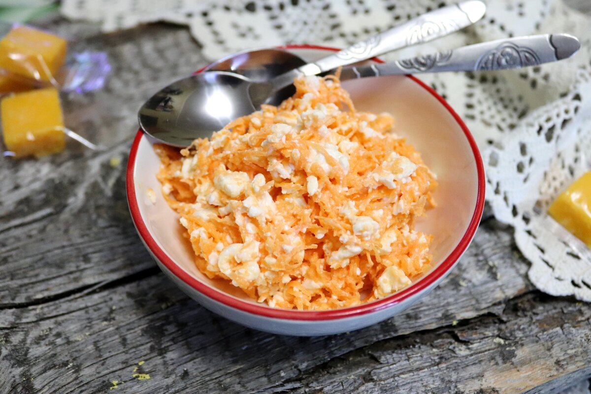 Вкусный и сытный салат из детства на завтрак или ужин. Такую морковку со сметаной мне бабушка готовила. Люблю по сей день! :) Ингредиенты Время приготовления: 15 минут. Приготовление Сладкую и сочную морковку натереть на мелкой тёрке. Примерно столько же берём вкусного зернёного творога. Для заправки по желанию йогурт или сметана. Добавить сахар по вкусу. Перемешать. Очень вкусно! Выложить морковку с творогом в пиалку и подать желающим. Приятного аппетита!