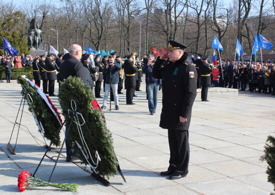 В завершение торжественно-траурных мероприятий рота почётного караула филиала ВУНЦ ВМФ в Калининграде прошла торжественным маршем, отдав дань уважения павшим героям.
