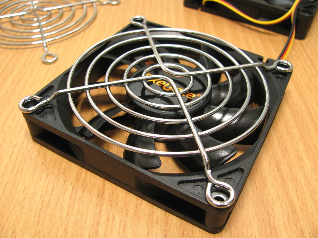 Между крепёжными лапками решёток и корпусами вентиляторов я прокладывал текстолитовые шайбы для снижения возможных вибраций.