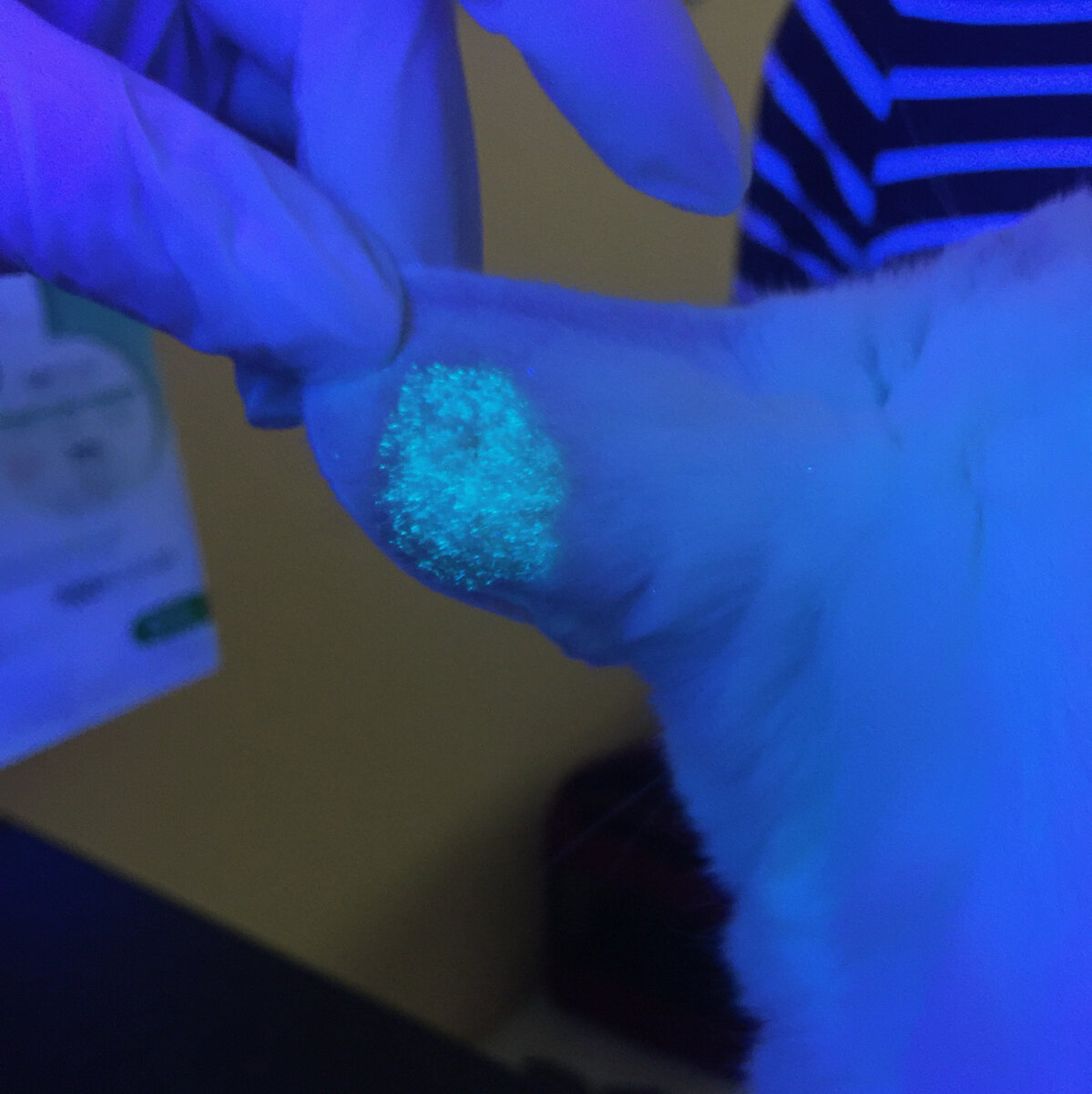 Свечение под лампой Вуда. Светится только M.Canis. Метод не является достаточно достоверным для постановки диагноза.