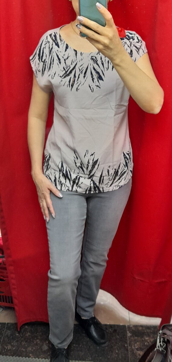 Простая блузочка из вискозы с ненавязчивым принтом просто отлично сочетается с брючками!