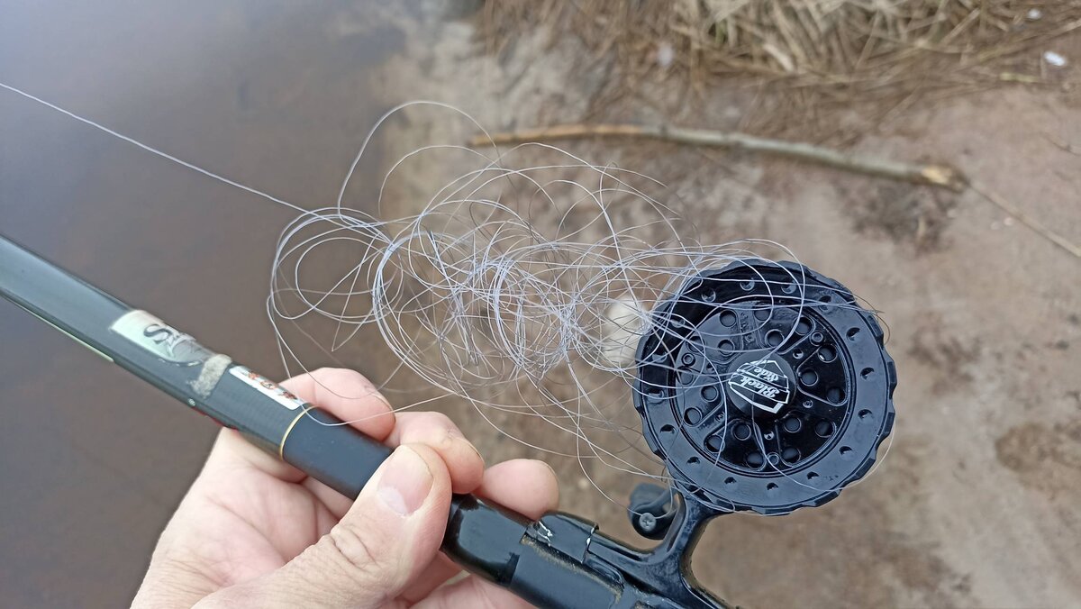 Сегодня дела идут явно лучше. Забросы получаются на 25-30 метров, если на катушке и случаются "перебежки", то довольно легко распутываются. И я уже считаю, что нормально проходят восемь забросов из десяти. Да я просто монстр! Я расслабляюсь, и наступает эпичный облом. С малюсеньким с виду узелком, я бьюсь почти полчаса.