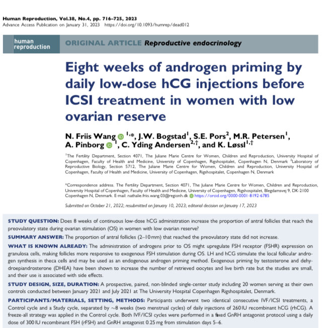 Прайминг низкими дозами ХГЧ у женщин с с бедным ответом на овариальную стимуляцию