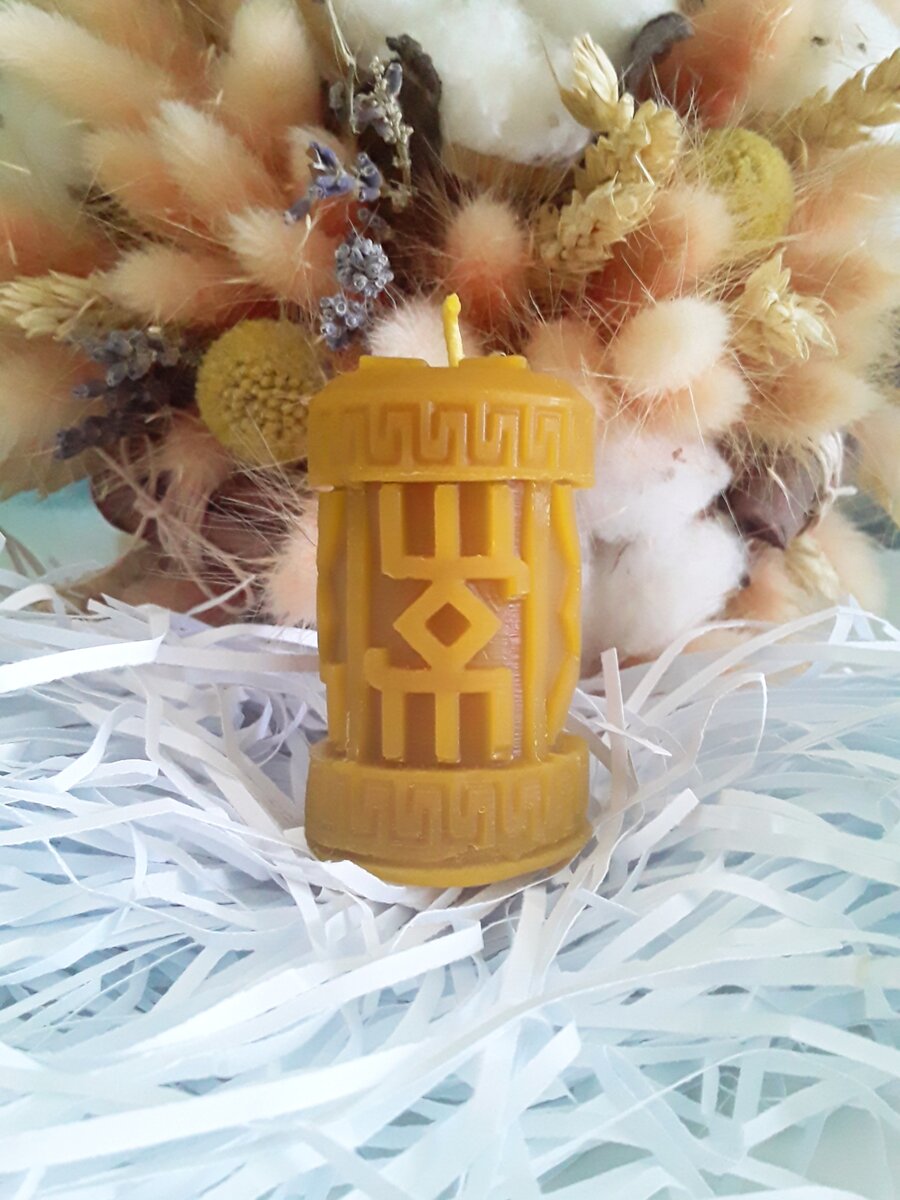 Свеча состоит из 4-х Русских рун, подобранных по авторской формуле. В верхней части свечи двойная руна «Ключ».