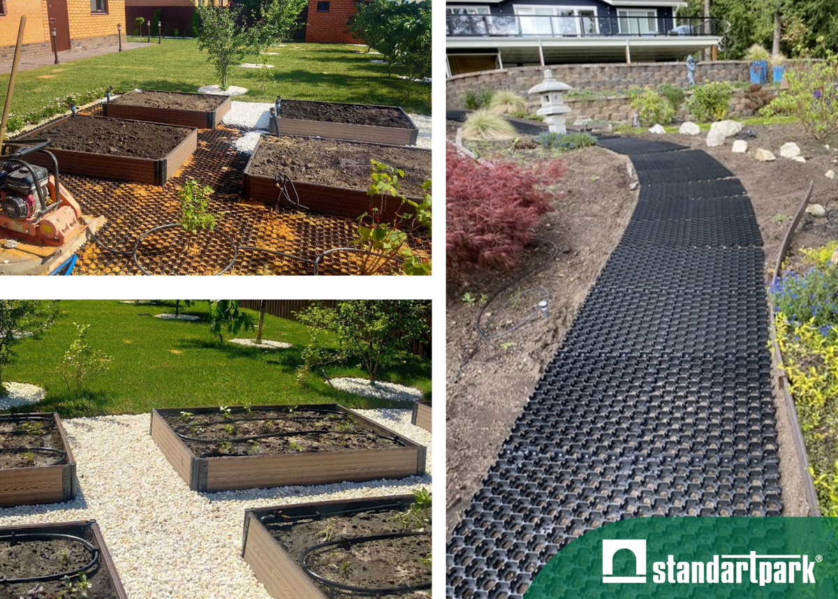 Газонная решетка Hexarm С ее помощью можно выровнять и укрепить грунт для организации газона или пространства с гравийным покрытием. Такая территория может использоваться как парковка, пешеходная дорожка или просто зона для отдыха и барбекю. Важно отметить, что если газонно-гравийная решетка укладывается под пешеходную зону, там достаточно «подушки» высотой 3-5 см из геотекстиля и песка. Для участка, который будет использоваться как парковка, «подушка» должна быть более надежной. В следующем порядке укладываются - геотекстиль, 25 см щебеночного основания и 5 см песка. Сверху, с помощью специальных анкеров, монтируется газонная решетка. Рекомендуемое количество анкеров - 4 шт на 1 кв.м. Садовые бордюры Без садовых бордюр из пластика сейчас не обходится ни один ландшафтный проект. Ведь они идеально справляются с задачей ограждения и разграничения. Рекомендуем обратить внимание на серию КантА, которая в последние годы стала бестселлером продаж! Все благодаря удобству установки, идеальному