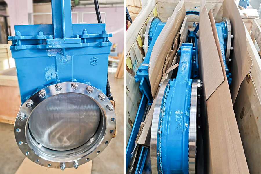 Отличительной особенностью задвижки с межфланцевым соединением является металлический шибер, позволяющий работать в агрессивных, вязких средах имеющих высокое содержание различных примесей, гранул и механических включений. Основной задачей перед производством стояло кратное уменьшение строительной длинны арматуры и сохранение высокого класса герметичности изделий.