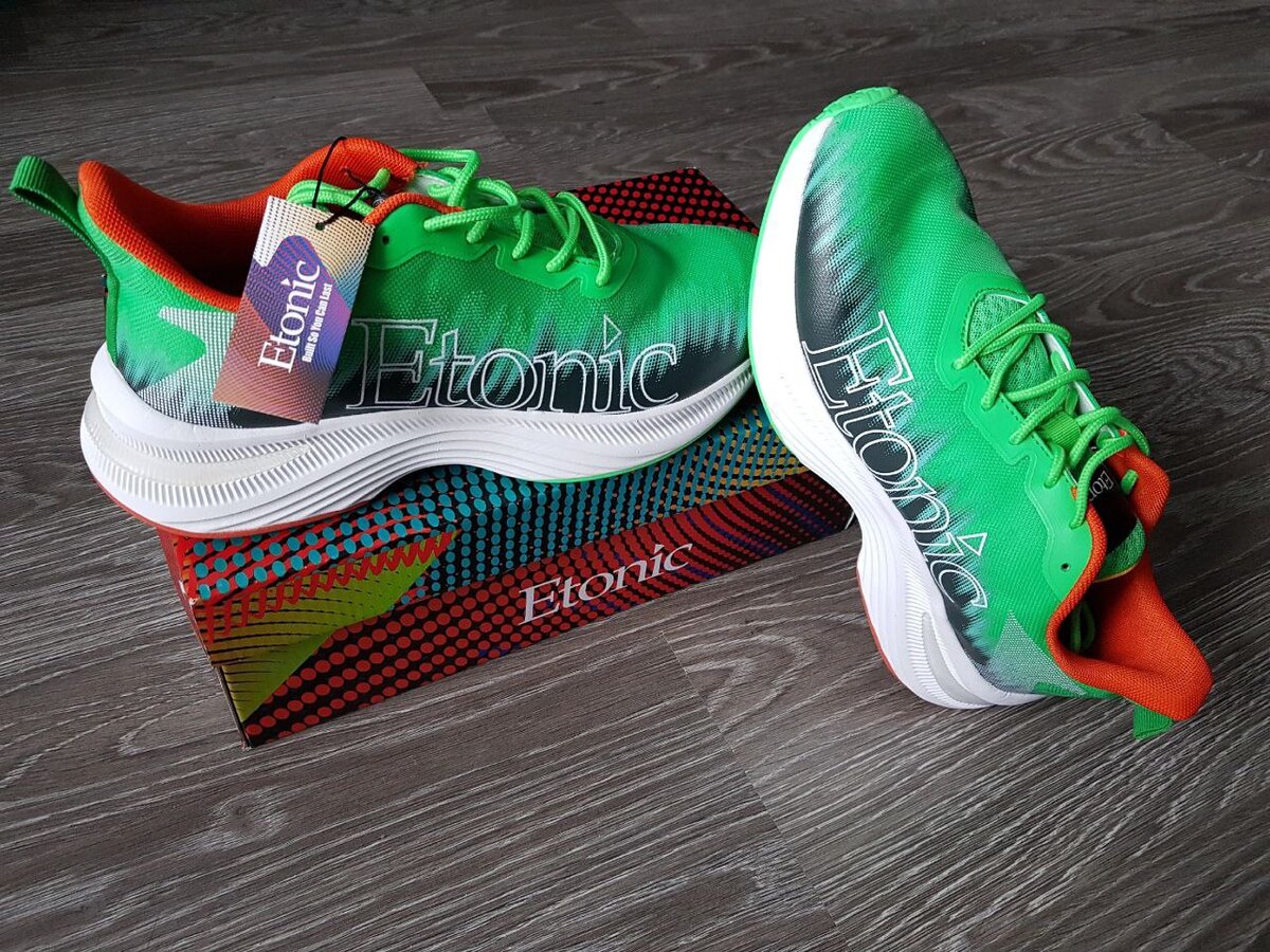 Иногда захожу в спортмастер посмотреть, что там по беговым кроссовкам. Последний раз обратил внимание на яркие зеленые кроссы неизвестной мне фирмы Etonic стоимостью 4990 рублей. Оказалось, что это культовый бренд спортивной обуви США, основанный аж в 1876 году. Интересно! Etonic были пионерами в обуви для гольфа, выпустили теннисную коллаборацию с Fred Perry и фирменные кроссовки с баскетболистом Akeem the Dream. Сейчас в спортмастере есть много беговых кроссовок Etonic, разные линейки. Дизайн для любителей классики: 80-ые, 90-ые. Меня привлекли Etonic Shadow Burn, по их дизайну понял, что кроссовки из серии на амортизацию: высокая подошва из пены (мягкая конструкция) и стельки с накладкой под пятку.