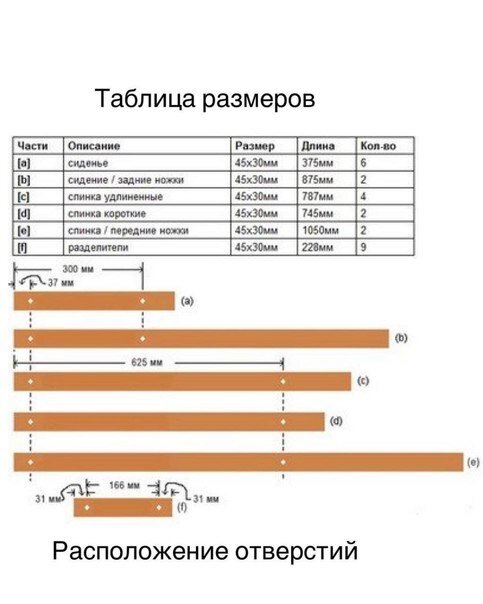 Обещала рассказать про изготовление стула. Пересмотрев чужой опыт, решила попробовать сделать садовый стул- шезлонг Кентуки. Это складной стул из реек. Для его изготовления понадобятся 5 трехметровых или 7 двухметровых реек примерно 30х40, с минимальной стороной не меньше 30 мм. Я взяла рейку 35х35, на лесопилке она была самая дешёвая и в наличии. Правда, не обработанная. В магазинах можно взять шлифованную (дороже) и пропустить этап с обработкой поверхности. Далее в мастерской мы в первую очередь отработали рейку на рейсмусе (выровняли поверхность), сделали разметку реек по схеме, распилили на составные детали, подписали их, разметили и просверлили отверстия. После чего сделали пробную сборку стула по схеме. Для сборки я использовала шпильку М8 и шайбы между деталями из нержавейки, чтобы дерево не терлось друг о друга. Перед покраской я ещё раз прошла каждую деталь шлифмашинкой. Окрашивала пропиткой для дерева для наружных работ в два слоя. Перед нанесением последнего слоя я всп