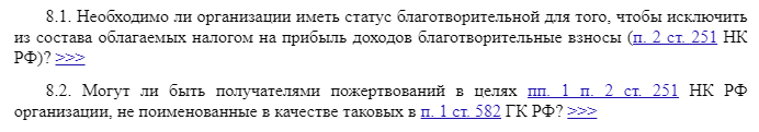Особую роль в этих правоотношениях играют благотворительные фонды. Это такие некоммерческие организации, которые собирают помощь от благотворителей и распределяют ее среди благополучателей. При этом в рамках налогообложения льготами обладают лишь благотворительные фонды, официально зарегистрированные в виде некоммерческих организаций (далее по тексту НКО). Кроме того, крайне важно, какой вид деятельности прописан у такой организации в уставе. Отклонение от уставной деятельности лишает организацию ряда налоговых льгот.