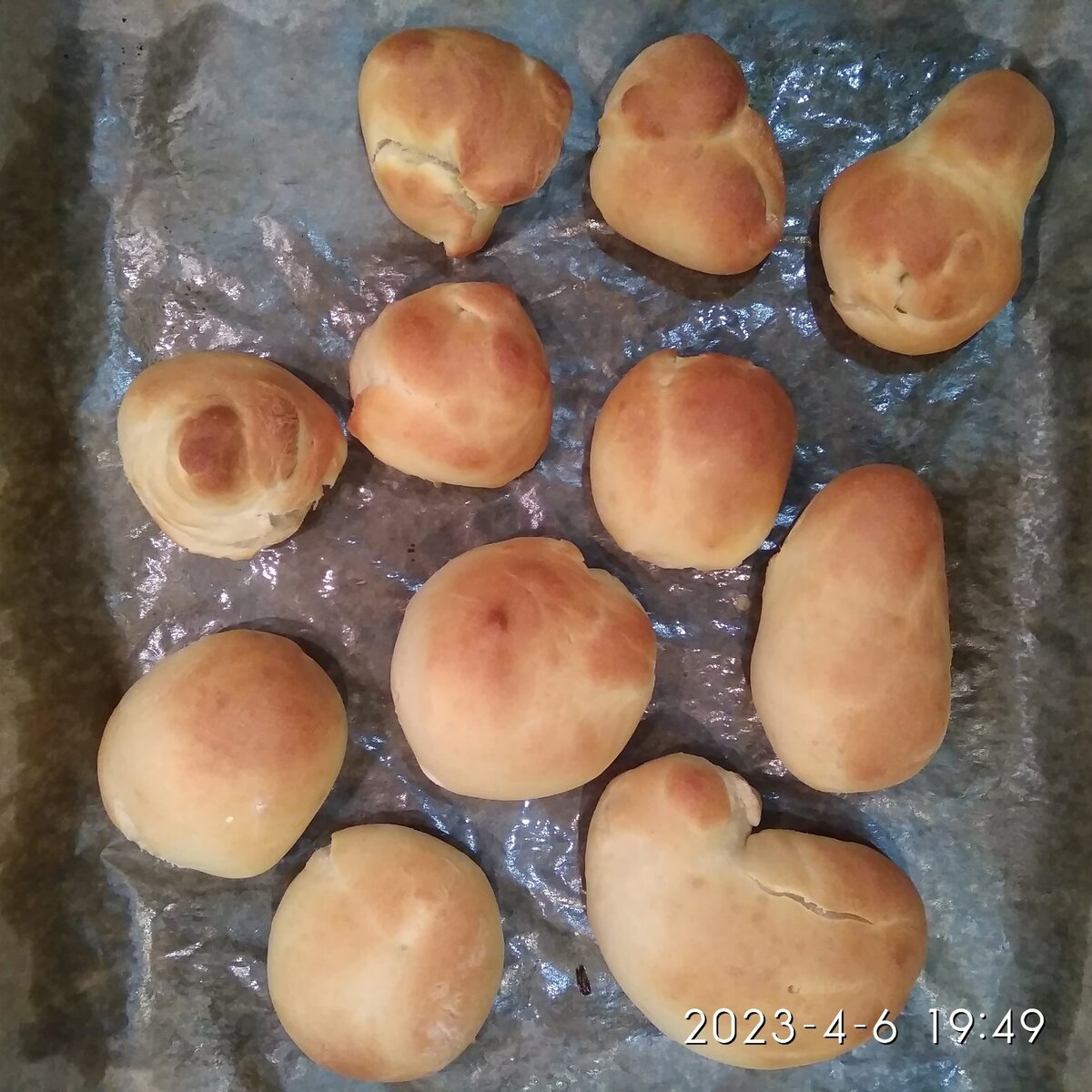 - Переложите булочки на подготовленный противень, накройте полотенцем и дайте постоять еще 30 минут в теплом месте.