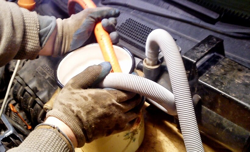 - ведро или «альтернативная» емкость для сбора жидкости;