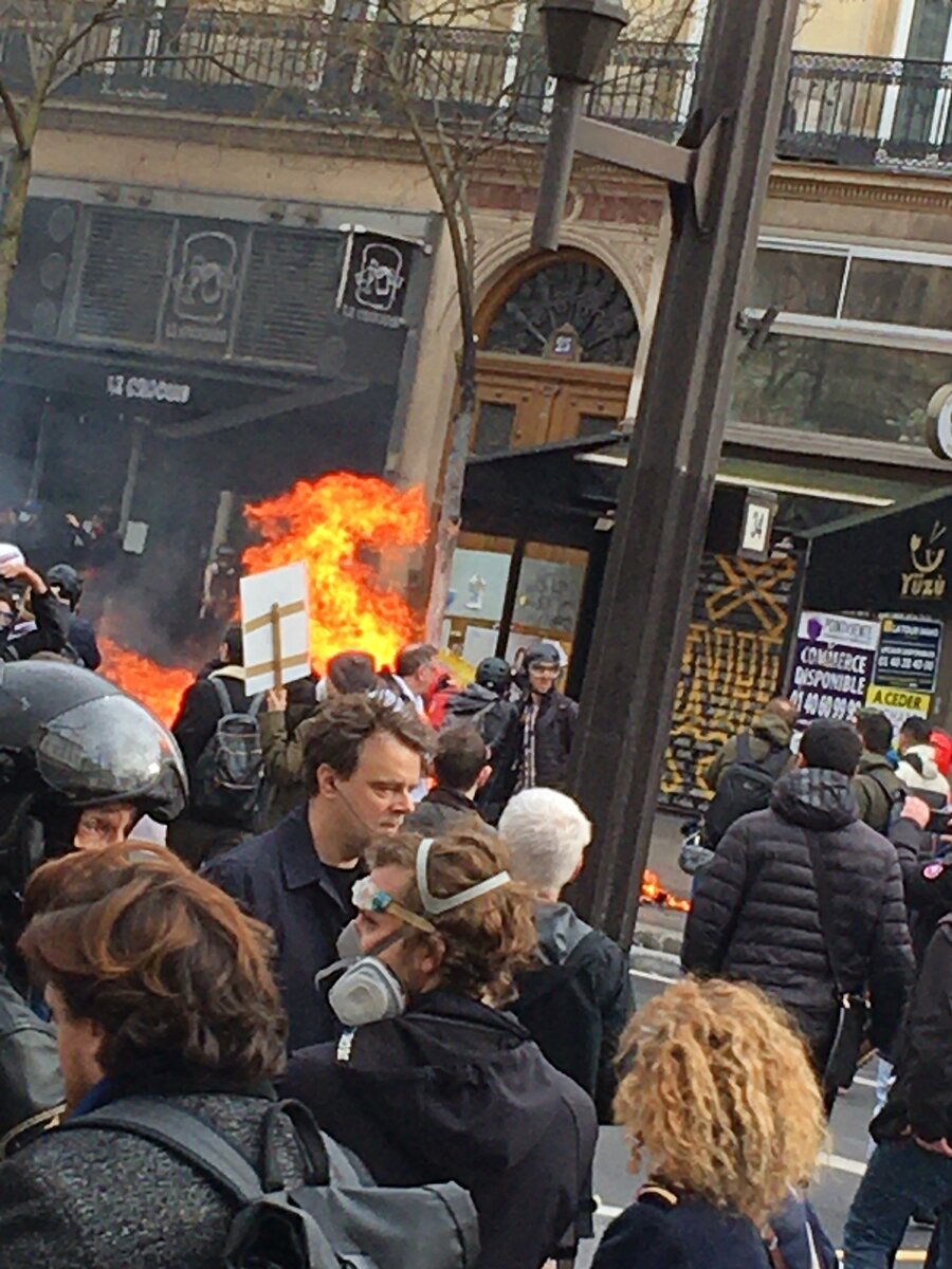 Во Франции сейчас во всю идут массовые протесты против пенсионной реформы. У меня сейчас там друзья, которые также присутствовали на протестах, расскажу немного о их впечатлениях и о том что меня немного смущает. Протесты проходят по всей Франции, в самом Париже они особо массовые. На улицу выходят люди всех возрастов и сословий. Полиция настроена агрессивно и очень мотивировано. Протестующих дубасят дубинками, обливают из водомётов и травят газовыми гранатами. Сам народ ведёт себя не менее агрессивно, в полицаев летят булыжники, витрины в центре города разбиты, поджигают киоски и мусор. Даже пожилые люди бегают с картонными гильотинами, везде звучит призыв: «Король должен умереть.» К протестам люди подготовились основательно, выходят в балаклавах, защитных очках и шлемах. Улицы Парижа завалены мусором, вонь жуткая. По мусорным пакетам бегают крысы и тараканы. Весь город пропах свалкой и горелой пластмассой. Французская власть также не хочет идти на уступки. Правительство Макро