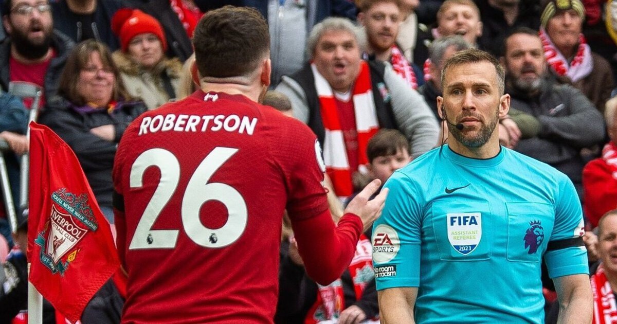 В перерыве матча 30-го тура АПЛ между «Ливерпулем» и «Арсеналом» (2:2) Робертсон подошел к боковому арбитру Константиносу Хатцидакису и начал о чем-то говорить. Лайнсмен отмахнулся от него и, вероятно, попал локтем в лицо защитнику «Ливерпуля». Игроки окружили главного судью Пола Тирни, призывая обратить внимание на инцидент, и Робертсон за возмущения получил желтую карточку. Сегодня судейская организация, отвечающая за назначения арбитров в английском футболе (PGMOL), сообщила, что Хатцидакис «не будет назначен на матчи ни одного из турниров», пока будет идти расследование Футбольной ассоциации Англии. Сама PGMOL также изучит произошедшее. Судья ударил локтем Энди Робертсона. Прямо в перерыве матча с «Арсеналом»