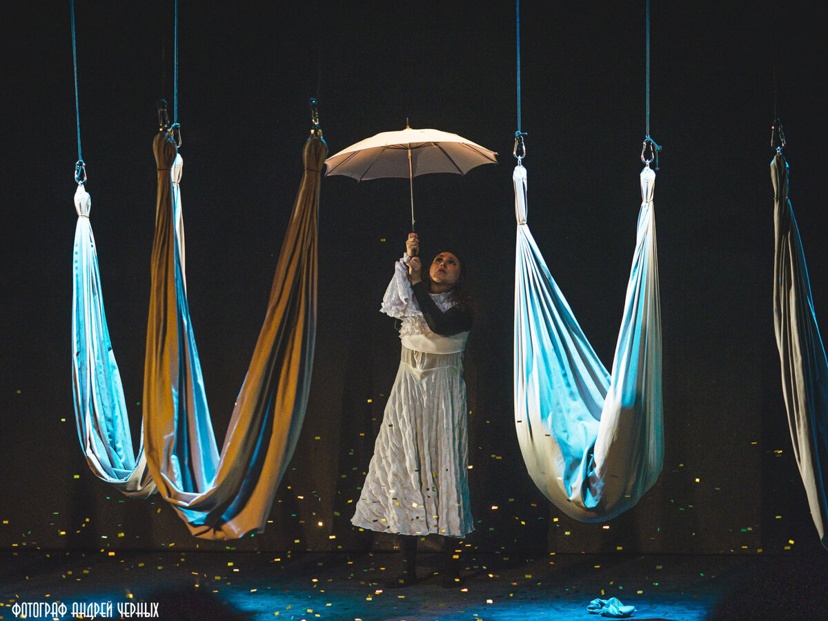 Одна нервная парочка все не могла усесться, и молодой человек в замысловатом наряде уже начал повышать голос… Так в полном соответствии с замыслом постановщиков начался «скверный водевиль», премьера этой весны в театре «Ангажемент» по одноименной повести Александра Куприна, посвященной настоящему дну русской жизни начала прошлого века. Семен Яковлевич Горизонт (Игорь Баркарь), произведя шум в зале, перебрался на сцену в сопровождении новобрачной (Ирина Ширикова), где и сдал ее цинично и бестрепетно в публичный дом к Анне Марковне (Екатерина Каменских), даме еще более циничной и уж окончательно бестрепетной. Висящие над сценой гамаки для йоги тем временем оказались не пустыми. Там, как матросы в трюме, ждали начала трудовой вахты девушки. Они в буквальном смысле слова оказались в подвешенном состоянии. Не взрослые, и не маленькие. Несамостоятельные и наивные, но при этом повидавшие в своей жизни столько, что хватило бы на несколько жизней и еще осталось. Не способные ничего решать, отве