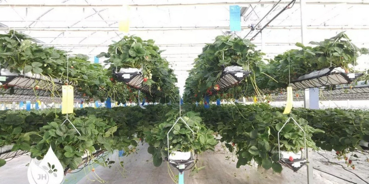 Японский фермер добился урожая в 12,5 кг клубники с квадратного метра в своей теплице с помощью подъёмной системы желобов. Это самый высокий показатель в Японии для теплиц, где выращивают клубнику на гидропонике. Подвесная установка, разработанная испанской компанией Hydroponic Systems, позволяет свести к минимуму затемнение растений. За счёт этого урожайность с квадратного метра можно увеличить в два раза. В данном случае фермер из Японии получил по 1 кг ягод с куста, в то время как средняя урожайность у его коллег составляет 0,6 кг. Система подвесных блоков позволяет поднимать или опускать растения для сбора урожая или их осмотра. Это даёт возможность увеличить плотность посадки, поскольку при проектировании теплицы можно не оставлять пространство для междурядий. Таким образом можно удвоить общий объём производства, высадив более 125 тыс. растений на гектар. Кроме того, система подвесных грядок повышает уровень освещённости растений. Компания Dyson Farming тоже разработала способ пов
