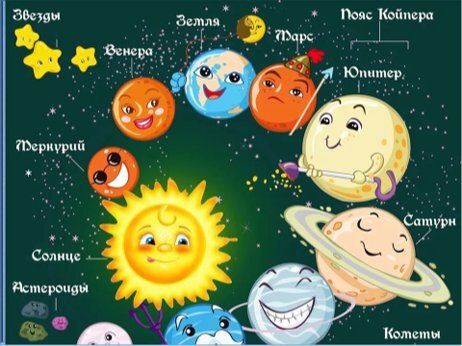 Расскажите детям о планетах. Вокруг Солнца вращаются 9 планет, а также астероиды и кометы. Наша Земля среди других планет на 3 месте. Все планеты вращаются вокруг Солнца и все меньше Солнца. Самая большая планета Юпитер. А Сатурн очень интересная планета. У нее есть кольца огромных размеров. У комет есть длинный хвост, который состоит из пыли и газа. Иногда кометы можно увидеть. Мы все живем на планете Земля. Это единственная планета, где есть суша и вода. Земля из космоса кажется нам голубой. Как запомнить планеты солнечной системы? В этом поможет стишок: