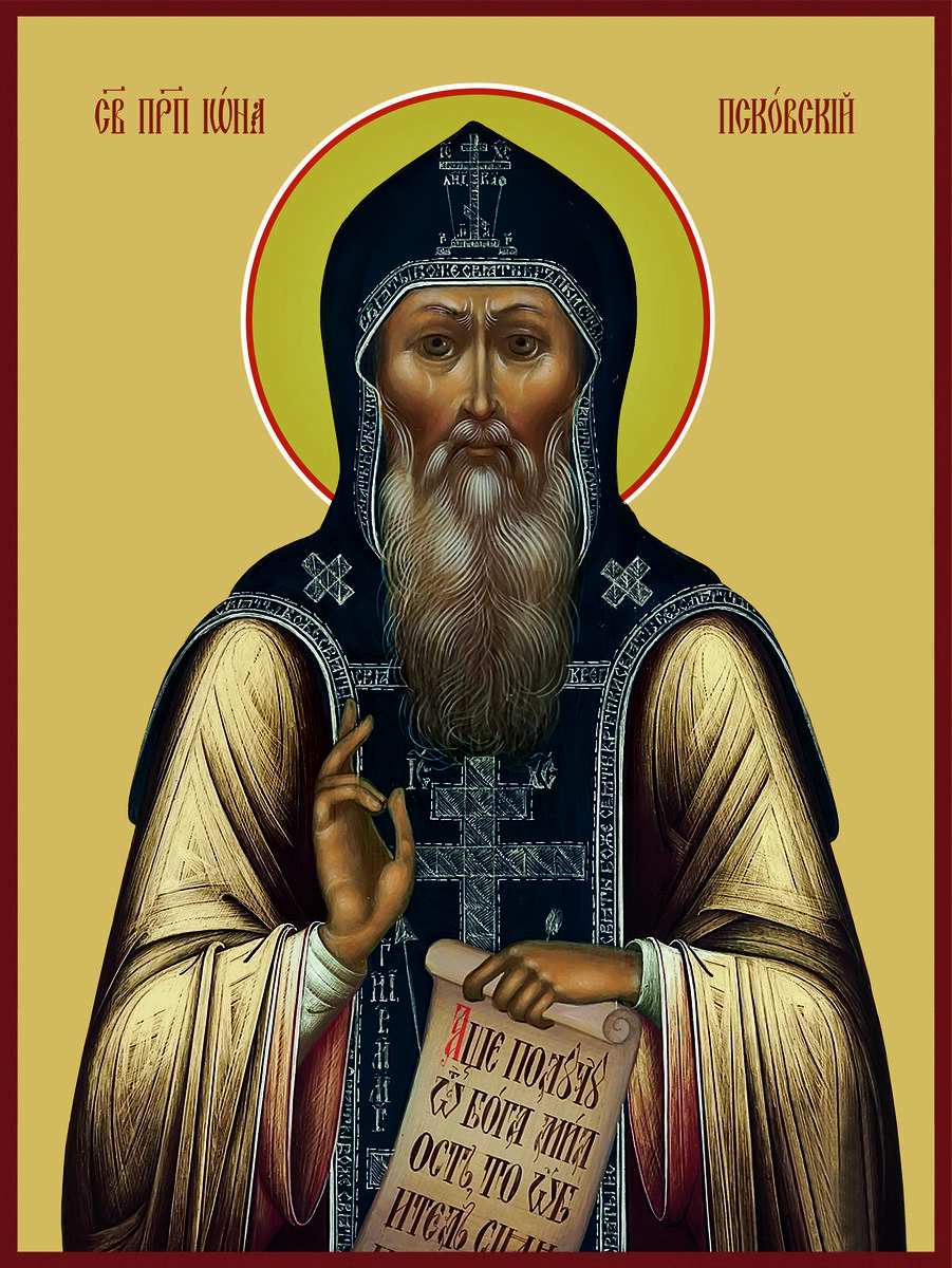 Иона Шестник, Псково-Печерский (+ ок. 1480), основатель Псково-Печерского монастыря, преподобный. Память 29 марта, в Соборах Псковских, Псково-Печерских и Эстонских святых Ранее он, нося в миру имя Иоанн, был священником в Георгиевском храме города Юрьева-Ливонского (он же Дерпт, ныне Тарту). Прозван он был Шестником, т.е. пришельцем, потому что родом происходил из московских пределов. Священник Иоанн Шестник был послан из Москвы на служение в Юрьев как миссионер. Он приехал с семьей: женой и двумя сыновьями, в 1467 году. [1]. В Юрьеве он сразу столкнулся с ненавистью и гонениями на православных. Вместе с пресвитером Исидором защищал свою паству от римо-католиков. «Но очень скоро слуги Папы стали принуждать его и его духовных детей к унии». Было много оскорблений. В 1470 году, прожив два года и шесть месяцев, отец Иоанн вынужден был удалиться из Дерпта вместе с женой Марией и детьми под защиту Пскова. Именно тогда, по преданию, одел он под рясу кольчатый панцирь [2]. В Пскове, где «про