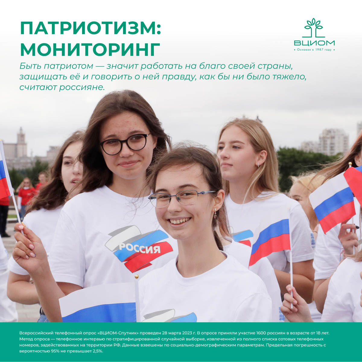 Девять из десяти россиян называют себя патриотами (91%), безусловными патриотами называют себя 52%.