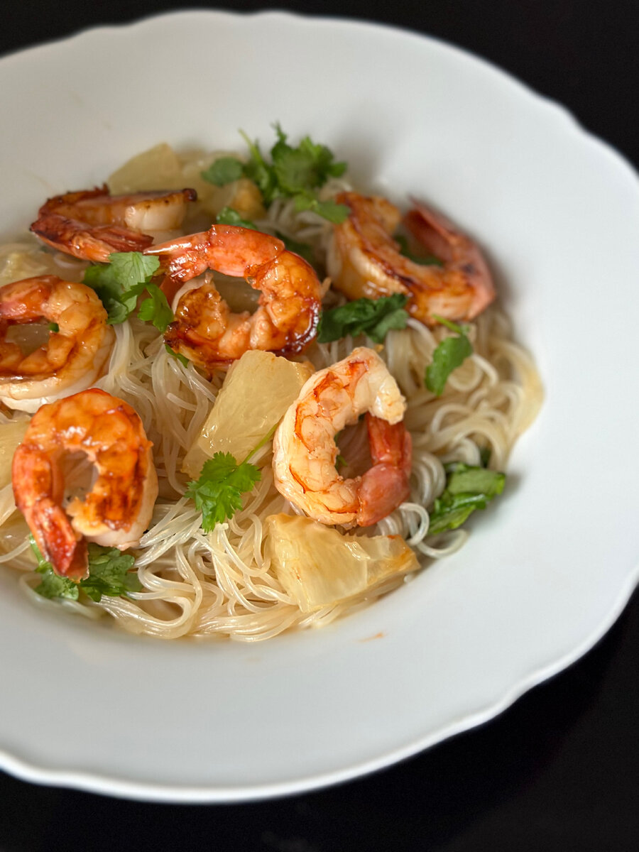 Свежий, простой в приготовлении и, конечно, очень вкусный салат! Ингредиенты: ▪️креветки~ 200–250г; ▪️помело~ 200 г в салат + 2 ст.л. доя маринада и заправки; ▪️фунчоза- 100г; ▪️кинза- 1/2 пучка (только листочки). Ингредиенты для маринада: ▪️оливковое масло- 1 ст.л; ▪️мед- 1 ст.л; ▪️сок помело- 1 ст.л. (можно лимонный сок взять) Заправка: ▪️оливковое масло- 2 ст.л; ▪️соевый соус- 1 ст.л; ▪️сок помело- 1 ст.л. (можно лимонный сок); ▪️мед- 1/2 ч.л; ▪️перец чили- 1/2 шт (или хлопья чили по вкусу); ▪️устричный или рыбный соус- 1 ч.л. по желанию; ▪️соль- по вкусу. ✔️Креветки медленно размораживаем в холодильнике, очищаем, удаляем черную вену. Смешиваем оливковое масло, мед и сок помело. Заливаем этой смесью креветки и даем им помариноваться минут 30. ✔️Фунчозу завариваем согласно инструкции на вашей упаковке. От кинзы отделяем листочки. ✔️У помело вырезаем мякоть. ✔️Смешиваем ингредиенты для заправки (перец чили мелко режем). Взбиваем до однородности. ✔️Креветки быстро обжариваем с двух сто