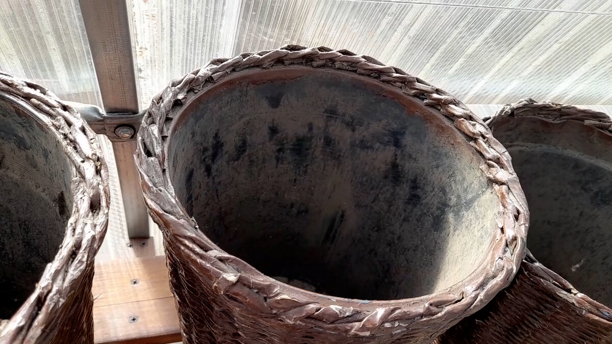 Кашпо для цветов из бумажных трубочек через три сезона эксплуатации