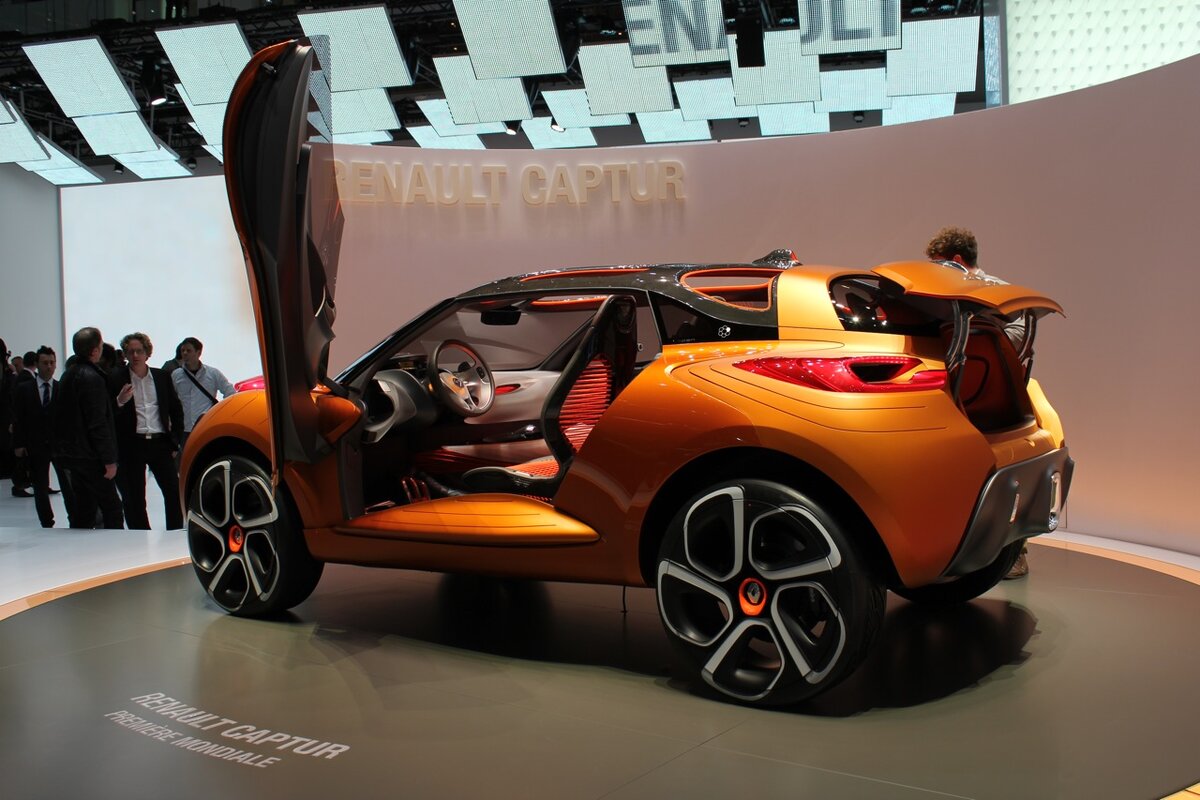 Прототип компактного кроссовера Captur, дебютировавшего на автосалоне в Женеве, значительно отличается от консервативной серийной версии, которые мы все видели на дороге. Разделяя большую часть своих принципиальных характеристик с Nissan Juke, учитывая размер и форму, концепт Renault Captur показывает, что причудливый не обязательно должен быть уродливым, придавая более органичные линии пропорций небольшому кроссоверу. Да, дизайнером экстерьера был Хулио Лозано, пояснивший свою работу словами от том, что главными источниками вдохновения были спортсмены и экстремальные виды спорта. «Разрабатывая Captur, я начал с изображения спринтера на стартовых колодках, когда его мышцы напряжены, а энергия высвобождается при выстреле из стартового пистолета» — пояснял он. Концепт оснащен жестким складным верхом, который после снятия открывает каркас из углеродного волокна. Таким образом, Captur Concept может трансформироваться из купе в кабриолет, из городского автомобиля во внедорожник, а его обща