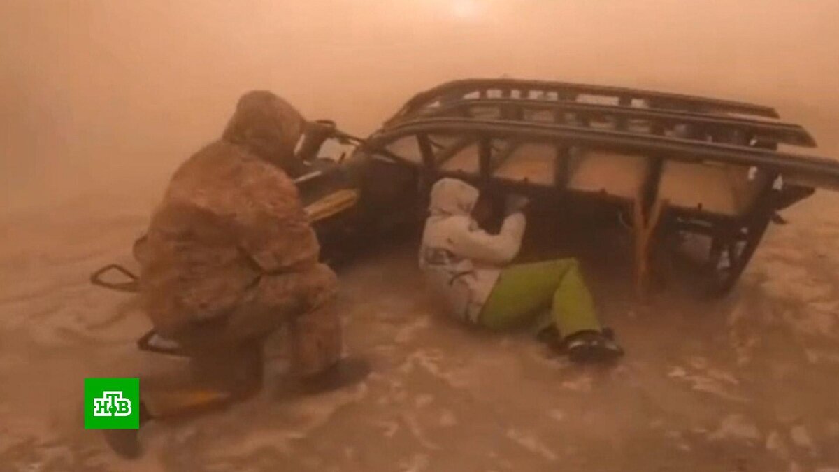 [ Смотреть видео на сайте НТВ ] На Камчатке вулканологи попали под пеплопад. Он был настолько мощным, что пришлось спешно делать импровизированное укрытие из снегоходов и нарт и прятаться под ними. Группа ученых отправилась к проснувшемуся на Камчатке вулкану Безымянный, чтобы установить в непосредственной близости от него сейсмостанции и другое оборудование. Внезапно вулкан выбросил столб пепла высотой 10 километров. Вместе с пеплом начали сыпаться мелкие камни и лапилли — кусочки расплавленной лавы размером примерно с кулак. Это длилось полчаса. Никто не пострадал. Безымянный извергается с 7 апреля. Росавиация присвоила вулкану высший уровень авиаопасности и на время его активности рекомендовала авиакомпаниям выбирать альтернативные маршруты. [ Смотреть видео на сайте НТВ ]