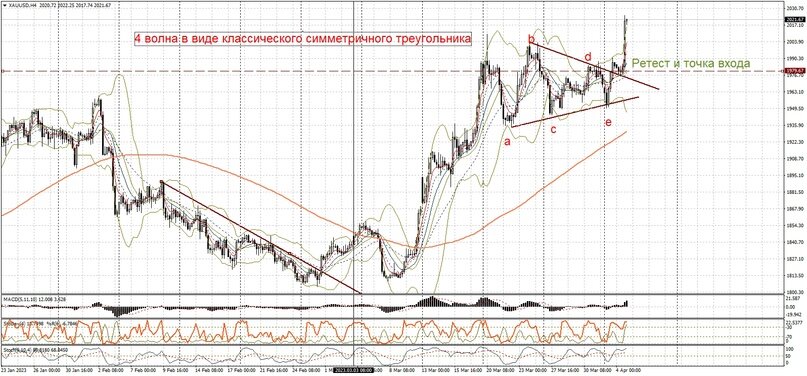 Пример классического волнового анализа этого инструмента. Словно из книги взято. Равностороннний треугольник, пять волн внутри, пробой верхней границы, затем ретест и движение в пятой волне. После завершения пятой волны пошла коррекция, вероятно прошёл импульс из 5 волн либо это сложная коррекция. Далее возможны два варианта: Скорее всего завтра рынок примет решение по направлению движения #Золота. Ждём.