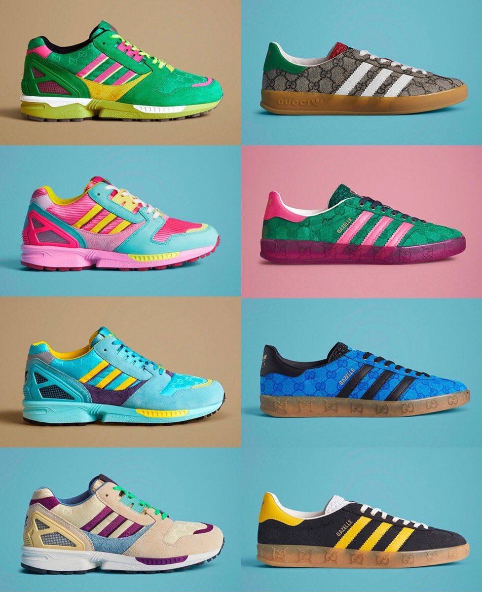 Партнёрство брендов началось в 2022 году с небольшой линейки одежды, обуви и аксессуаров — и, естественно, наделало много шуму. Во втором совместном релизе adidas и Gucci представили новые расцветки моделей Gazelle и ZX8000.