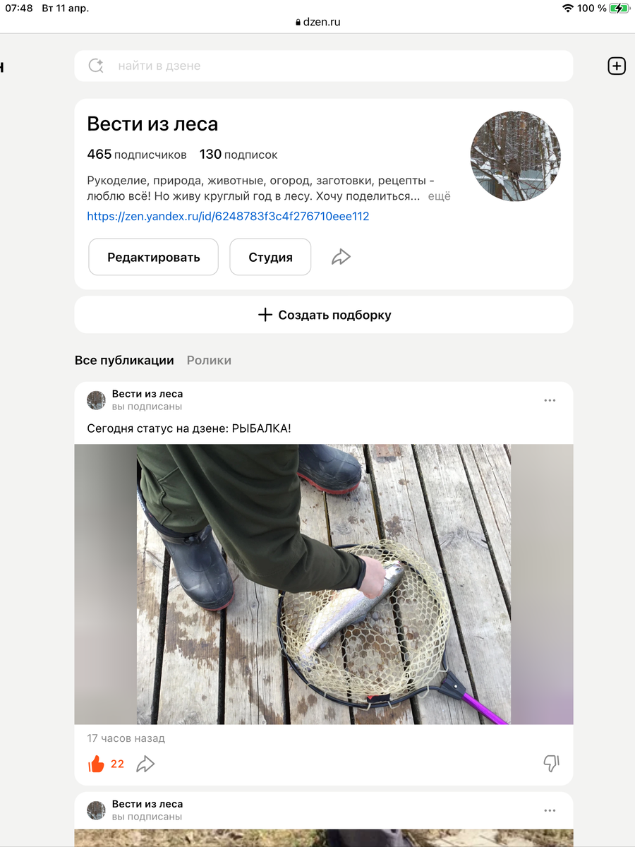 Проведя вчерашний день в отпуске, говоря иначе на рыбалке, сегодня с чистой душой и отдохнувшим мозгом включила планшет, чтобы пообщаться с вами! Как видите, у меня 130 подписок. Интересные люди, интересные каналы. Но! Но дзен утверждает, что у меня 64 подписки! Пересчитала ещё раз. Тут 61. Дозировка дзена меня не устраивает! Значит опять кого-то не вижу, не забегу, обижу!? Хорошего всем дня! Кого дзен спрятал - иду искать!
