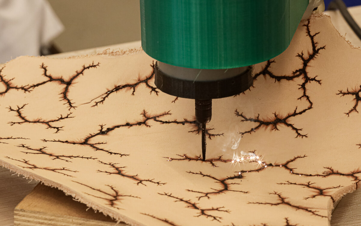 Ученый Санкт-Петербургского государственного университета промышленных технологий и дизайна разработал новый метод отделки кожи растительного дубления током. С помощью него на поверхность кожи подаются электрические разряды, оставляя после себя узоры в виде молний. Инновационная технология отделки, разработанная в СПбГУПТД, не имеет аналогов в мире и способна приблизить отечественную обувную и кожгалантерейную промышленность к созданию трендовых изделий, способных заменить продукцию ушедших из России зарубежных брендов. Технология позволяет получить трехмерное изображение на коже, что невозможно при использовании даже лазерной методики. Метод применим только с помощью специального оборудования. Экспериментальным путем автор технологии разработал установку, направляющую электрический разряд слабой мощности, который за счет высокой частоты проходит только по верхнему слою кожи. «При разработке технологии я отталкивался от известного метода выжигания током по дереву. Однако он не подходит