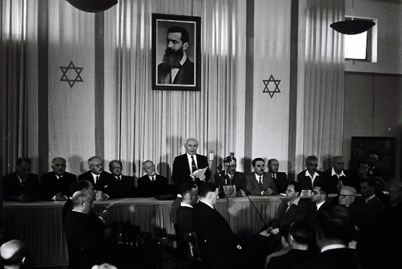 14 мая 1948 года «Юнион Джек» был спущен в последний раз, и англичане покинули страну. В тот же день Давид Бен-Гурион, видный деятель сионистского движения, провозгласил образование государства Израиль, открывающего двери для всех евреев.