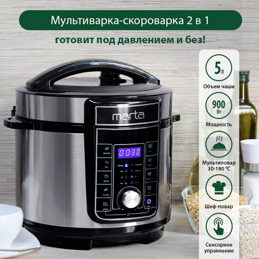Редакция BLIZKO выбрала 6 моделей мультиварок с лучшим соотношением “цена-качество”. 6 место – MARTA MT-4332 Достаточно габаритная модель с функцией скороварки по низкой цене. Корпус выполнен из металла и пластика. Чаша из толстого алюминия с антипригарным покрытием защитит блюда от пригорания. Из недостатков: нет решетки для пароварки, очень мелкий шрифт на панели управления. Характеристики: Подробнее о мультиварке MARTA MT-4332 5 место – Pioneer MC401 Мультиварка с прочным, трехслойным антипригарным покрытием чаши, 16 автопрограммами, более 200 режимами приготовления, светодиодным многофункциональным дисплеем и электронным управлением поможет вам приготовить множество полезных, вкусных и питательных блюд без особых усилий. Характеристики: Подробнее о мультиварке Pioneer MC401 4 место – Scarlett SC-MC410S22 Недорогая мультиварка имеет 8 основных программ. Этого достаточно, чтобы приготовить все самые любимые блюда. Панель управления с удобным и понятным меню. Прозрачная крышка позволя