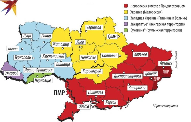 По мнению спикер Госдумы Володина: распад Украины начался еще в 2014 году после выхода Крыма и Донбасса. Я думаю он начался ещё раньше.
