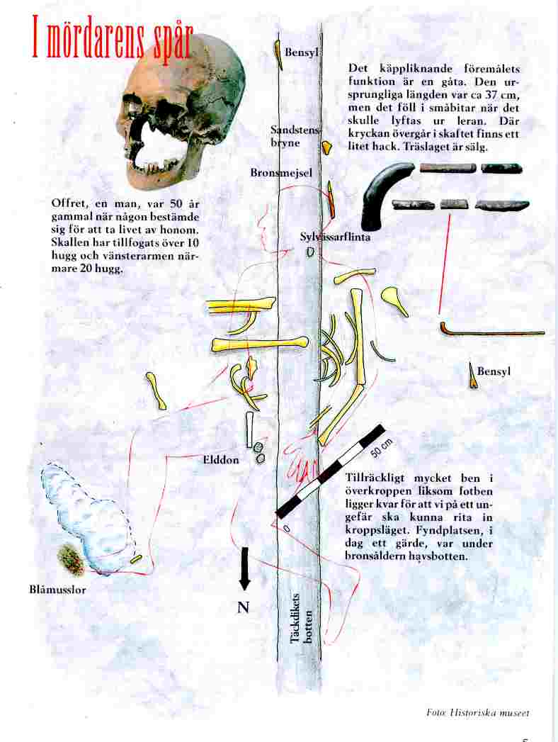 Вещи, включая кремневое кресало (приспособление для добывания огня), точильный камень, бронзовое шило на деревянной рукоятке, каменные скребки явно лежали в какой-то сумке на уровне пояса. Возможно, этот мужчина был ремесленником, а то, что вещи остались с ним, означает, что причиной убийства не было ограбление. Кроме орудий, рядом со скелетом нашли обработанные куски дерева и раковины молюсков. Возможно, дерево относилось к остаткам рыболовной снасти. Примечательно, что кремень, использованный для изготовления орудий, добыт в районе Кристианстада - это около 500 км от Гранхаммара.