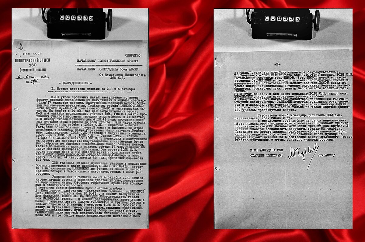 Вот это политдонесение. Оно называется "Военные действия дивизии за 2 -3 и 4 октября".