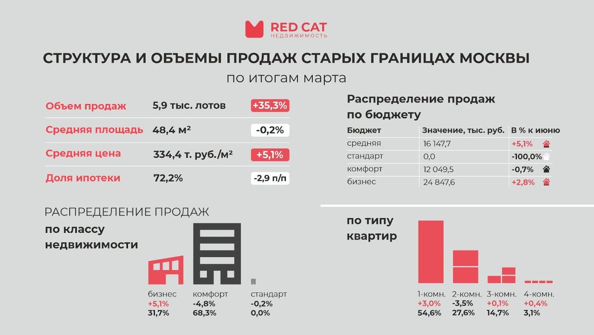 Динамика и структура продаж в Старых границах Москвы по итогам марта