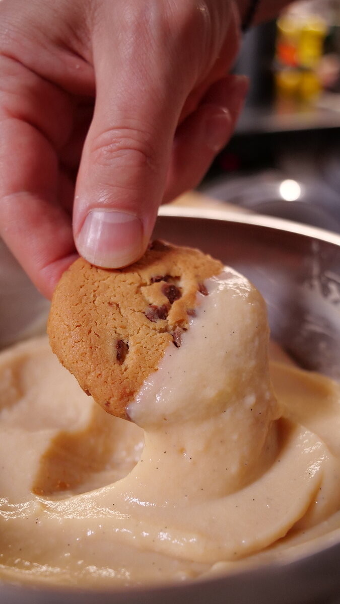 Сок лимона - 1 ст. ложка Приготовление: В миску насыпаем сахар, разбиваем два яйца, добавляем кукурузный крахмал и все хорошенько смешиваем венчиком, чтобы не было комочков. В сотейник наливаем молоко, добавляем стручок ванили и доводим до кипения. Закипевшее молоко процеживаем через сито и частями наливаем в миску с яичной смесью, постоянно помешивая. Получившийся крем отправляем в сотейник, добавляем одну столовую ложку лимонного сока и перемешиваем. Крем доводим до кипения и варим 1-2 минуты. Заварному крему даем остыть и можно подавать с печеньками. Приятного всем