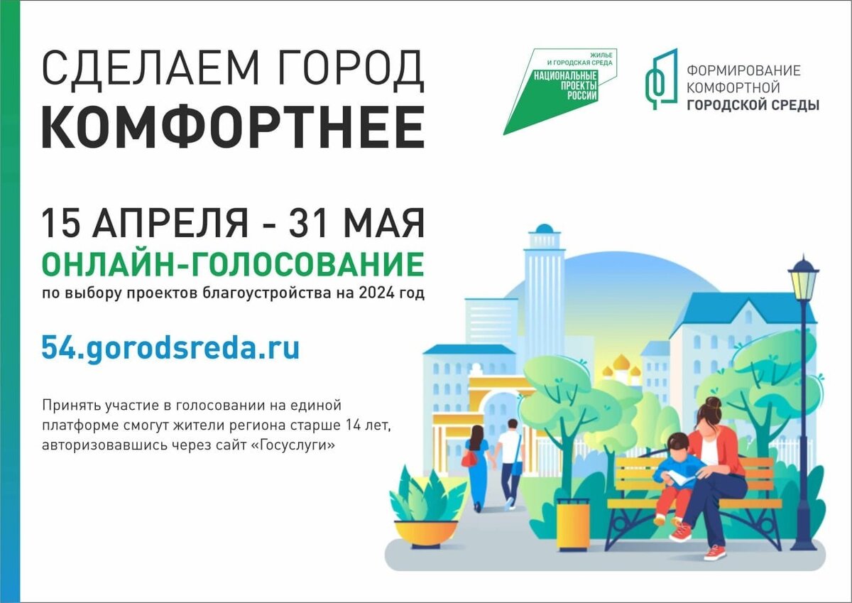 С 15 апреля по 31 мая жители региона могут принять участие в голосовании по выбору общественных пространств для благоустройства в 2024 году. Голосование, как и в прошлом году, пройдёт на единой онлайн-платформе 54.gorodsreda.ru.