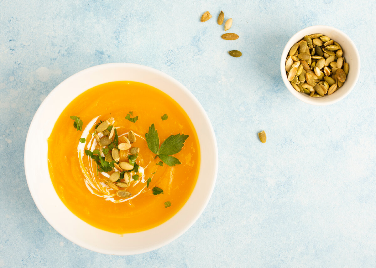 4. Тыкву и морковь выкладываем в кастрюлю, добавляем воду и варим до готовности