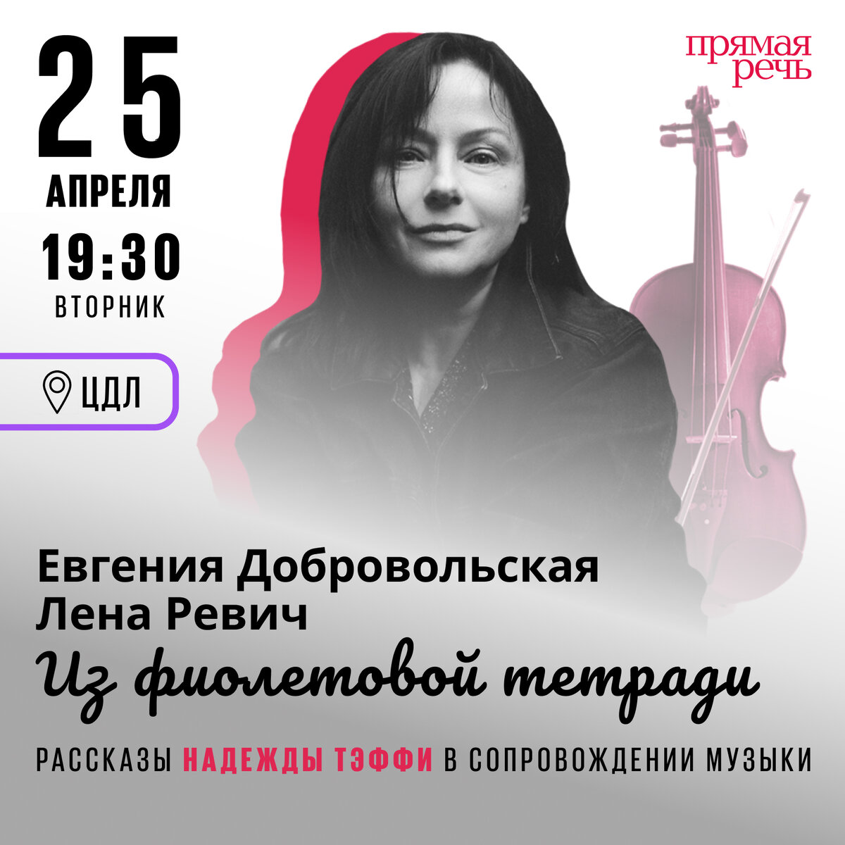 Мы рады представить вам новое мероприятие — музыкально-литературный вечер в компании актрисы Евгении Добровольской и скрипачки Лены Ревич.