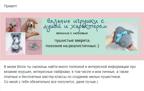 Друзья, все мои Мастер-классы, платные и бесплатные вы можете найти на Бусти https://boosty.to/anknittoys Я специально завела этот канал для того, чтобы было удобно без лишнего обращения получить МК на моих пушистиков и непушистиков. Я сама порой не люблю писать мастеру, чтобы купить МК))) Ну а вообще я стараюсь быть на связи, но не во всех соцсетях могу ответить быстро - то уведомления не приходят, то впн нужно дополнительно включать. Так что я буду пополнять свою страничку на Бусти, а вы можете подписаться, чтобы не пропустить что-нибудь интересное для вас :))