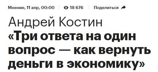 Глава ВТБ Андрей Костин дал интервью изданию РБК, в котором он рассуждает о том, где взять деньги на "создание новой модели роста экономики". Как видно из заголовка, госп. Костин предлагает три способа "вернуть деньги в экономику". Первый способ - "перезапуск приватизации". Второй способ - "более смелое использование" финансовых резервов и госдолга. Третий способ - приоритетное использование бюджетных средств на развитие логистики (прежде всего - ж/д и портовой), создание системы финансовых расчетов в рубле и "дружественных" валютах, развитие цифровых валютных платформ, перезапуск целых отраслей промышленности на базе инноваций и импортозамещения, укрепление обороноспособности. Третий способ комментировать не буду, поскольку он очень обширный (указал только самое основное), остановлюсь на первых двух, на которых так же сделали акценты многие СМИ. Госп. Костин считает, что приватизация - это "инструмент, уже неоднократно доказавший свою эффективность", и приводит множество аргументов и